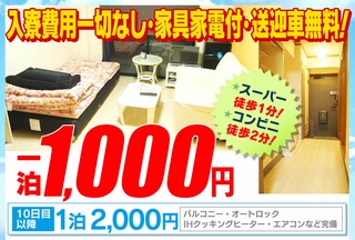 初回10泊までの寮費がなんと!1泊1,000円!!!