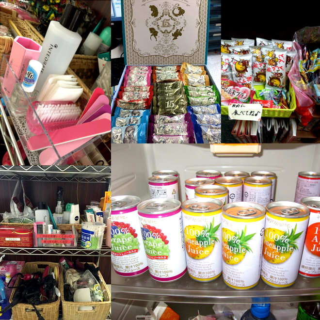 • お菓子やジュース・ヘアアイロンやネイルセットも自由に使ってね♡